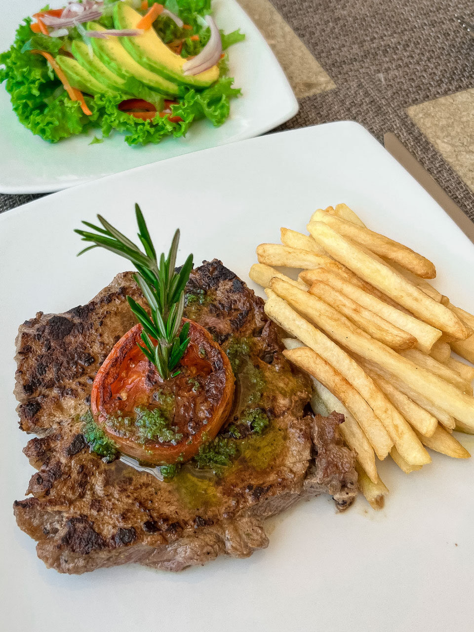 300 gr. del mejor corte de churrasco, acompañado de unas crujientes papas a la francesa y una ensalada mixta llena de color y sabor.